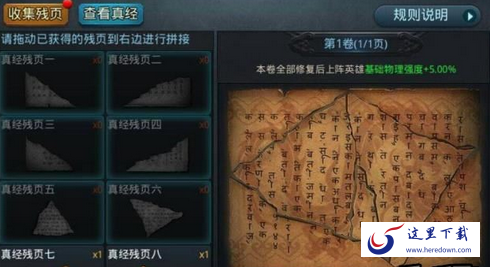 第1卷:本卷全部修复后上阵英雄基础物理强度+5%。