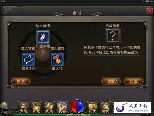 目前,可以合成的首饰包括项链、手镯、戒指,可以合出一个新的随机首饰,有几率合成出更高品质的首饰,合成必定成功,三个首饰可以合成一个新的首饰。