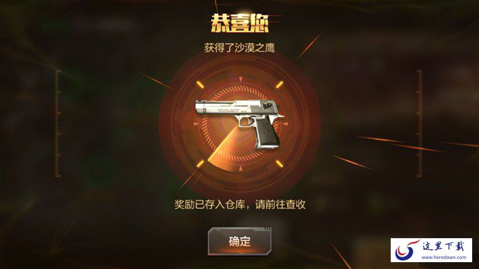 1、做任务得武器。不管是主线任务还是日常任务,玩家朋友们都可以完成系统设置的游戏目标而获得战斗武器。举个例子,剧情模式第一章节全部通关后的奖励是300钻石,而第一章节上半部分通关后的奖励就是手枪武器沙漠之鹰(永久)。所以既想提升自己的战斗力又想获得武器装备的小伙伴们,个人战役是你不可错过的游戏模式。