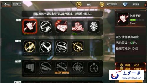 首先无论对于任何模式而言,手套提升几乎是必须的。别看只有10%减少,实际上战斗之中上弹越快自然更迅速终结敌人,因此防滑手套是最为优先提升的。