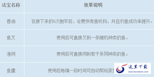 7、钓鱼中还可以使用各种钓鱼法宝,香油、鱼叉、渔网、鱼鹰,都会对钓鱼起很大帮助。