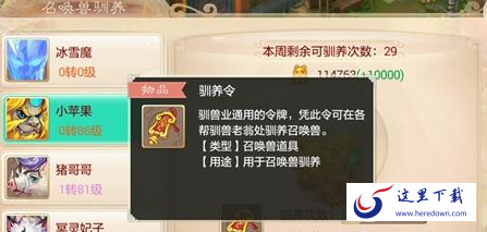 每枚驯养令可以在这里进行1小时的驯养,可以给召唤兽增加1万亲密度。