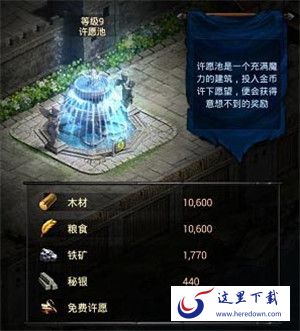 玩家每日都可以在许愿池中获得免费许愿的机会,建筑的等级越高,则玩家能够获得的免费许愿次数就越多。