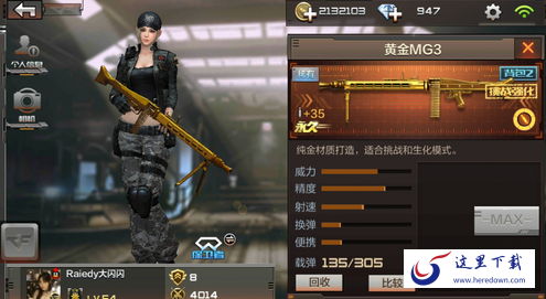 目前闪闪用的精通满黄金MG3,非爆头伤害40~50,爆头伤害高达180~190