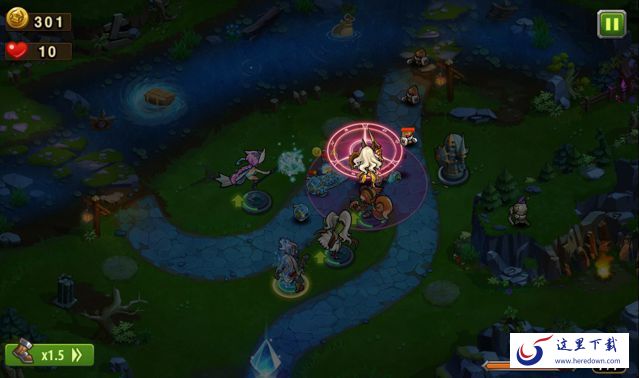 每当主线关卡达到一定进度时,便能解锁本作的另一特色-塔防关卡。塔防关卡采取了「英雄即是塔」的设计,原本在一般关卡中负责进攻的英雄们,到了塔防关卡则必须努力阻挡敌人入侵。由于英雄就是塔,因此塔的效果与技能也理所当然地参照了英雄本身的特性,像是坦克型的西利会派出士兵阻挡敌人前进、而支援型的奥拉则可以施放技能为士兵补血等等。