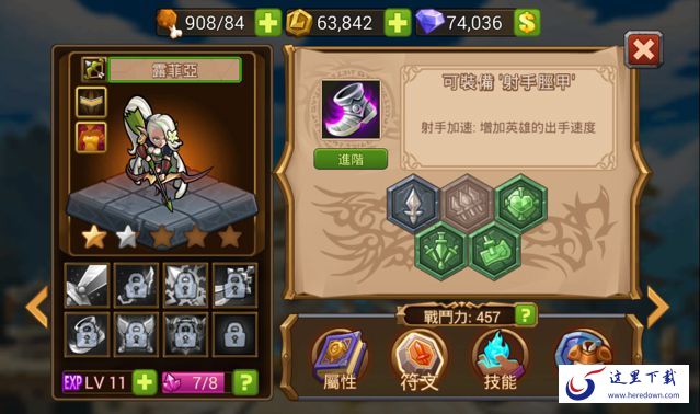 再搜集两个符文,就能让露菲亚进阶成蓝色英雄啦!