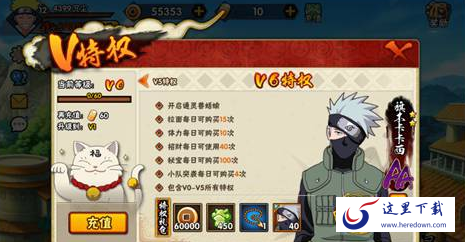 以上便是火影忍者手游V特权每一等级的详细介绍啦,并且V6特权可以得到卡卡西哦!不过这也是土豪玩法啦!小伙伴们自己决定咯!