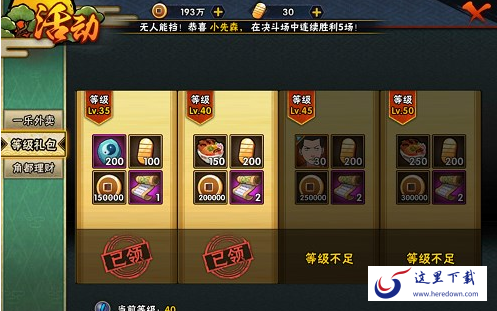 当玩家的等级达到5的3倍以上(包含3倍)最少可获得50金币,前期虽然只有50金币,但是积少成多等级礼包总共送出的金币达到1000金币之多哦~小编这个懒散的平民玩家也达到40级了,小伙伴们定然获得了不少的金币吧。