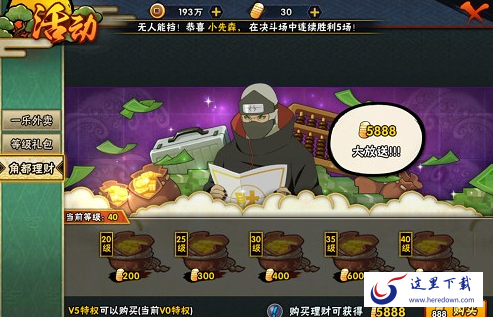 不得不说这个也是本身土豪玩家的福利了。必须达到V5才能参与购买,不过购买理财是相当划算的。平民玩家也就只能看看了