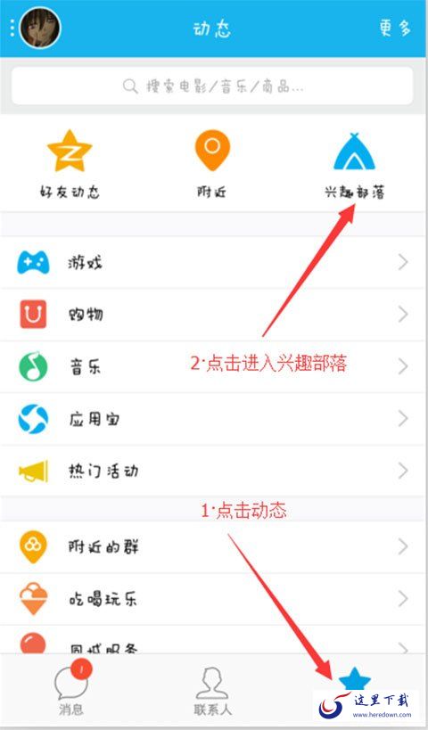 首先,你得打开手机QQ,左下角点击“动态”,之后点击右上角“兴趣部落”(兴趣部落在这里奥)
