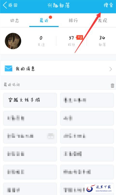 进来之后,会显示你最近进过的部落,也会有相关图标显示你已经关注的部落。如果你还没有关注我们穿越火线手游部落,可以点击搜索进行查询!
