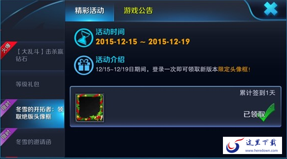 领取圣诞头像框的方法其实非常简单,小伙伴们只要在12月15日至12月19日任何时间登陆王者荣耀游戏,就可以在相关活动界面赢得圣诞头像框。基本上只要一进入游戏,游戏的相关活动会自动弹出,小伙伴们只要轻点手指就可以领取了。