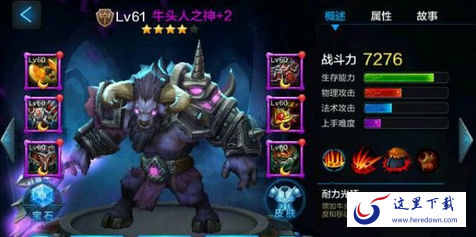 比如这个家伙,牛头人之神。路西法是近战类型,所以不能被放风筝。牛头血量成长很高。出装出了鞋子后主出蓝刀和众神。他开大过来肯定不至于被秒。然后你一个眩晕砍他一顿他基本大半血就差不多了。然后如果他还想要秒杀你,那么恭喜,他要死在牛头的战斧下了。重点是利用好眩晕和大招。
