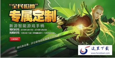 “全民超神定制版”新游手柄活动12月17日-12月23日预约,12月24日-12月28日抢购,数量有限先到先得。提前预约畅享优惠,限量豪华礼包免费领。新游手柄,让你随心乐享游戏生活。