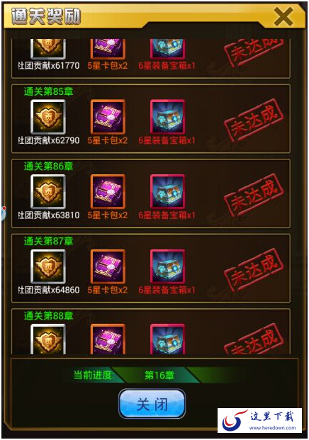 每一关副本中,都会有四个BOSS,每天系统会赠送三次机会给予挑战,挑战完毕后,会根据玩家对应的伤害,给到不同的贡献奖励。而且每打通一个小BOSS,就会有对应的奖励宝箱,而每通过一章呢,就可以过得一次通关的超级奖励!!!哇哈哈!