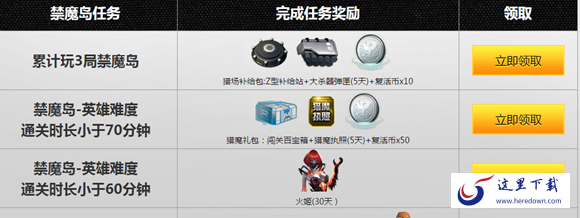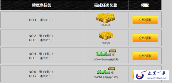 每天将更新一轮前一天的猎场禁魔岛地图的通关时长排名,玩家只要只要满足速刷的通关时长要求即可获得当前任务的奖励, 可累计领取。
