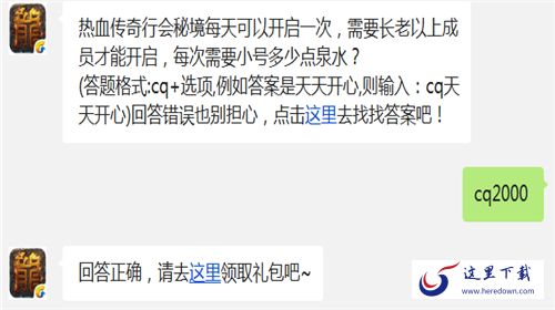 热血传奇行会秘境每天可以开启一次,需要长老以上成员才能开启,每次需要小号多少点泉水?那么小编给大家带来热血传奇手游1月7日每日一题的答案。