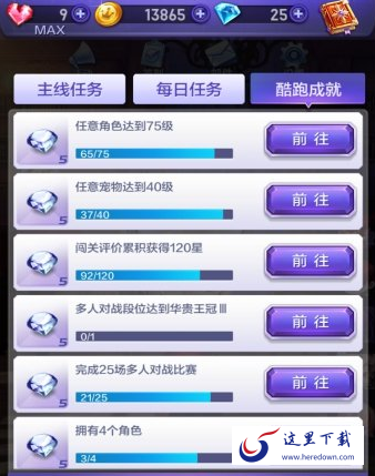 除了主线任务与每日任务有大礼相送外,还有酷跑成就的海量钻石等你来拿,缤纷好礼,送个不停。玩家们可以在跑酷成就中查看自己所完成的内容并领取相应的奖励,并且每个成就奖励都是海量钻石。