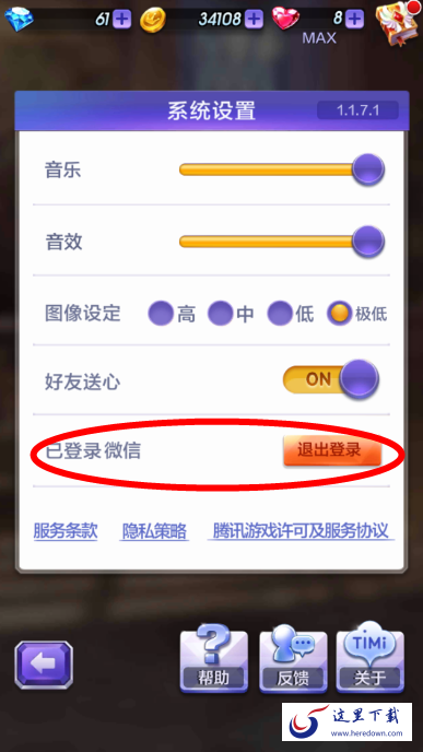 3、点击退出登录,然后登陆另一个QQ或微信帐号即可