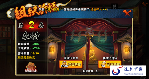 3、组织鼓舞:当然为了让参与迎击叛忍的成员士气更加旺盛,小伙伴们也可以选择组织鼓舞,在组织鼓舞期间,每个成员的攻击力都会提升5%、当然购买组织鼓舞也需要500金币。如果出现了高难度的首领,可以选择购买。购买组织鼓舞没有太多限定,只要是组织里的成员都可以购买。