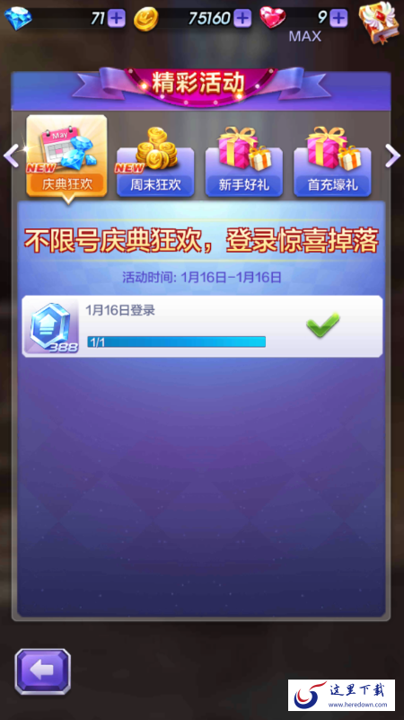 1、在游戏主界面左上角,有一个活动按钮,点击进入精彩活动中心。
