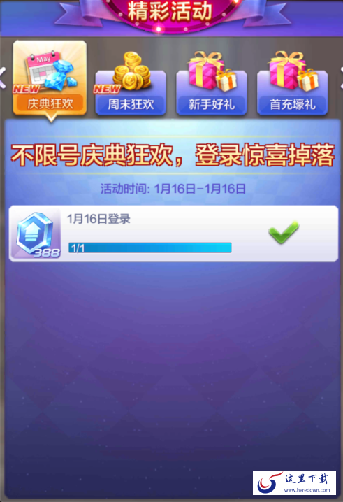 2、进入精彩活动,找到对应活动参与,领取奖励。
