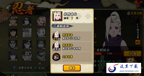 井野碎片获取方式:精英副本第四关、第十三关、忍者招募