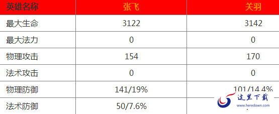 张飞和关羽英雄属性对比
