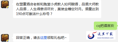 在热血传奇手机版盟重酒店老板和跑堂小虎教人如何酿酒,品酒大师教人品酒,人生得意须尽欢,莫使金樽空对月。酒量达到190点可激活什么称号?面小编给大家带来热血传奇1月21日每日一题的答案,一起来看看吧。