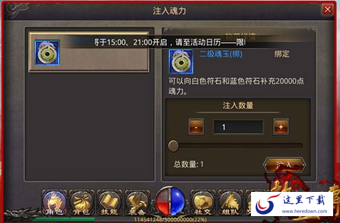 每个符石都拥有魂力值,魂力值累计越高,可获得的属性就越多。当然,魂力值也是有上限的。魂力值达到固定标准,即可开启相应副属性。通过打怪或使用道具“魂玉”可以补充魂力值,使符石获得最大属性加成。魂玉可通过符石分解,打怪掉落,也可在云游商人处购买。而每开启一条属性将会获得一个带属性的称号,每个称号只能获得一次,属性值可累加。