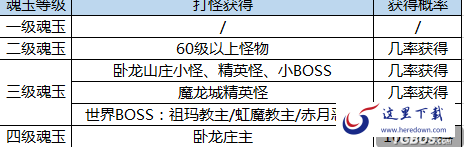 符石分为白、蓝、紫、橙4各等级,等级越高增加属性越多,白色符石可以在瞎眼道士廖风升处购买,更高等级符石需要使用魂玉来兑换。