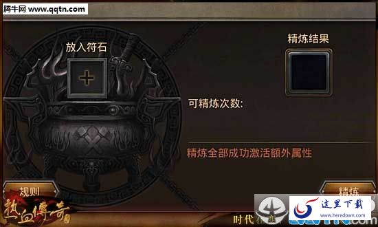 当所有的属性条都精炼成功或完美精炼后,将会符石觉醒,新增一条随机属性!额外增加的属性包括暴伤、幸运+1等多种极品属性的一种。