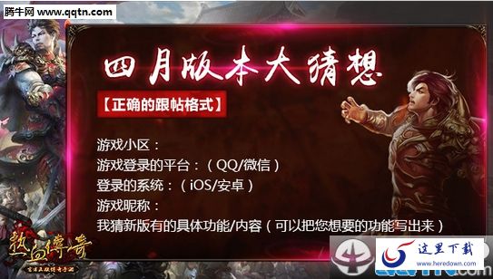 在《热血传奇手机版》4月大版本尚需期待之际,官方论坛推出专享活动,玛法勇士只需晒出关于4月新版的猜想内容,就有机会梦想成真!论坛专享活动,从3月14日白色情人节开始,至3月20日结束,持续7日精彩不绝!活动上线后,《热血传奇手机版》内从江湖小虾到一代大侠,都对新版本充满期待,纷纷跟帖回复。