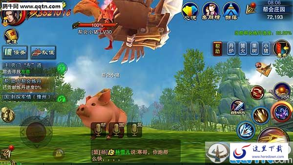 还记得桃花源记中描述世外桃源的美好吗?《六龙争霸3D》帮会小猪,给你尽情享受田园生活的乐趣。在帮会庄园里养只猪吧,厌倦了打打杀杀的江湖,就在这个远离战争的庄园里好好享受自己的生活,与心爱的TA共享别样江湖乐趣。