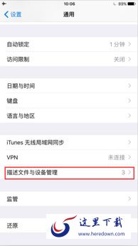 2、点击“描述文件与设备管理”