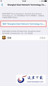 进入手机设置-->通用-->描述文件与设备管理-->Shanghai Giant Network Technology--->信任Shanghai Giant Network Technology,点击验证即可。具体操作步骤如下: