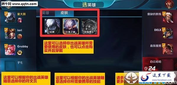 选定完英雄后可以选择皮肤,调整符文页和技能,也可以多和玩家通过打字或者语音交流。