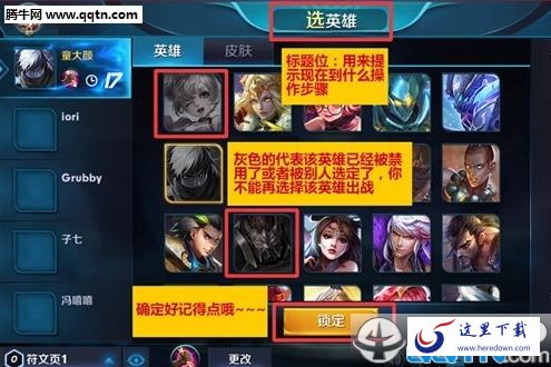 在禁用阶段结束后,开始正式的选将阶段。从蓝色方一楼开始选择出战英雄,之后蓝红双方轮流双选英雄,不过每个玩家选择英雄的时间是独立的,各自为20秒,也就是说红方的1楼2楼不是同时选择出战英雄的,而是1楼选择完后,2楼才开始选择英雄。需要注意的是,双方不能选择同样的英雄出战,如果没有选定英雄超时后系统会帮你选一个英雄出战,如果点选了英雄但是没有点“锁定”按钮超时后系统会选择你的点选英雄出战,为了节约大家的时间,一旦确定请点击“锁定”。