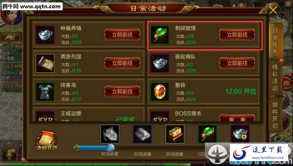 国探期间,本国玩家完成刺探任务将有50%的额外经验加成。