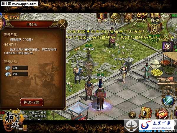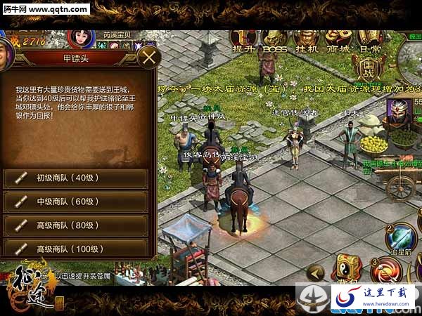 骆驼商队任务需要大家到达40级(含)之后,每天在凤凰城的甲镖头(坐标117,94)处领取,任务内容是将商队护送到王城的邓镖头处(坐标275,205),每天可护送两次。并且按照玩家等级解锁的任务难度也不一样,初级商队要求40级、中级商队要求60级、高级商队要求80级,目前最困难的商队任务则需要100级。