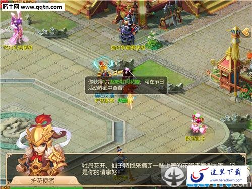 活动内容:得知牡丹仙子下凡,人间牡丹争相斗艳,每逢周末就便会有牡丹花在各地盛开喜迎牡丹仙子,牡丹仙子则会采摘了她中意的花瓣于周天送给忙活了一周的玩家们,只要你当天活跃度≥20点就能领取一枚高花瓣值的七彩花瓣!