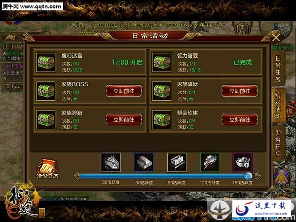 《征途手机版》魔幻迷宫是每周一、三、五的17:00-19:00开启的精彩活动。角色等级25级开放,活动开启后,从凤凰城的迷宫传送者处进入魔幻迷宫,通过迷宫传送员可以传送至随机层数。每当达到5、10、15、20、25层后,点击经验王可以获得经验奖励。任务完成后可以获得20活跃度奖励和一个神秘宝箱。