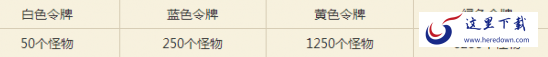 不同品质颜色的“培训令牌”使用后获得的任务不同,品质越高的任务需要玩家击杀的怪物数量越多,获得的任务奖励也越高。