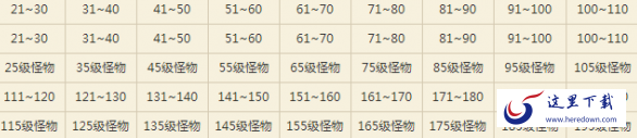 “培训令牌”任务中的目标击杀怪物等级随着玩家角色等级的提升而相应提升(见下表)