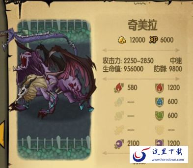 地狱20层奇美拉攻击力在2250-2850,中速,生命956000,防御9800。