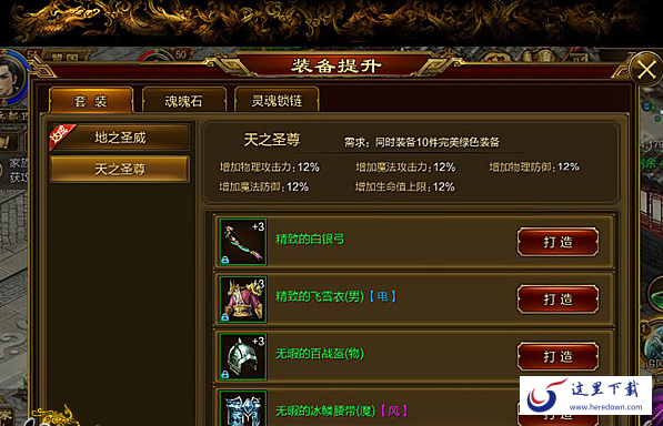 《征途手机版》中,玩家除了可以通过打BOSS掉极品之外,还可以自由锻造装备。锻造装备时,使用不同的材料可以锻造不同的装备部件,使用的材料品质越高,越能锻造出高属性极品装备。装备打造时,只有4等以上材料可锻造出附带灵魂锁链的极品装备,使用4等材料灵魂锁链出现概率相对较低,但5等材料及以上品质必定能让装备具有灵魂锁链特性。