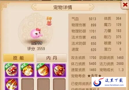 由于不过血耐泡泡虽然抗性十分高,生存能力得到了很大的保证,但输出能力上有很大的欠缺,因此我们在选择内丹时可以优先选择提升输出能力的内丹。当然你也可以选择让它的生存能力最大化,让其学习腾挪劲——这种宠物不需要较强的输出能力,但可以吸引对方的输出来集火,打法宠效果还是非常不错的。