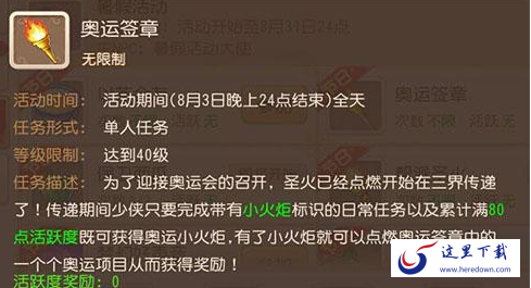 1、活动期间完成带有小火炬标识的日常任务以及累计满80点活跃度即可获得“奥运小火炬”。