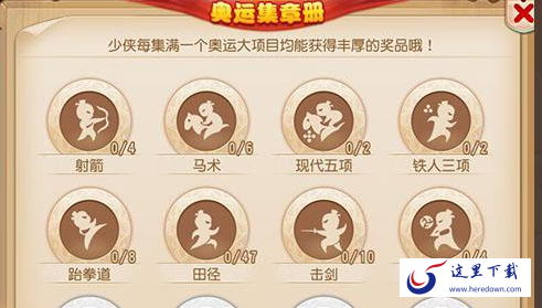 如图,点开一项奥运项目,里面会有几个步骤,每个步骤需要一枚奥运小火炬,把每个步骤点亮即可获得奖励。