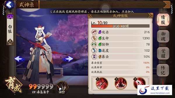 御阴阳师手游式神白狼魂推荐: